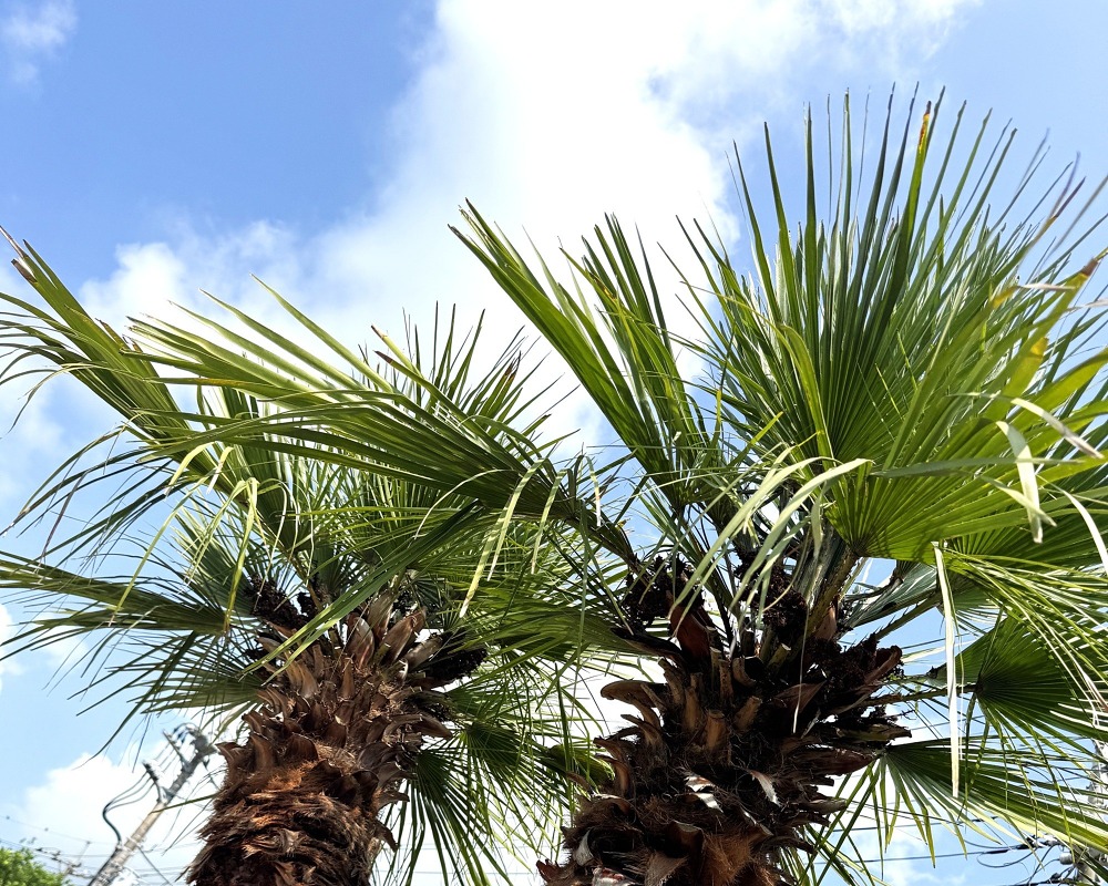 見た目のインパクトだけでなく、樹形や品種によって表情が変わるのもヤシの木の魅力。